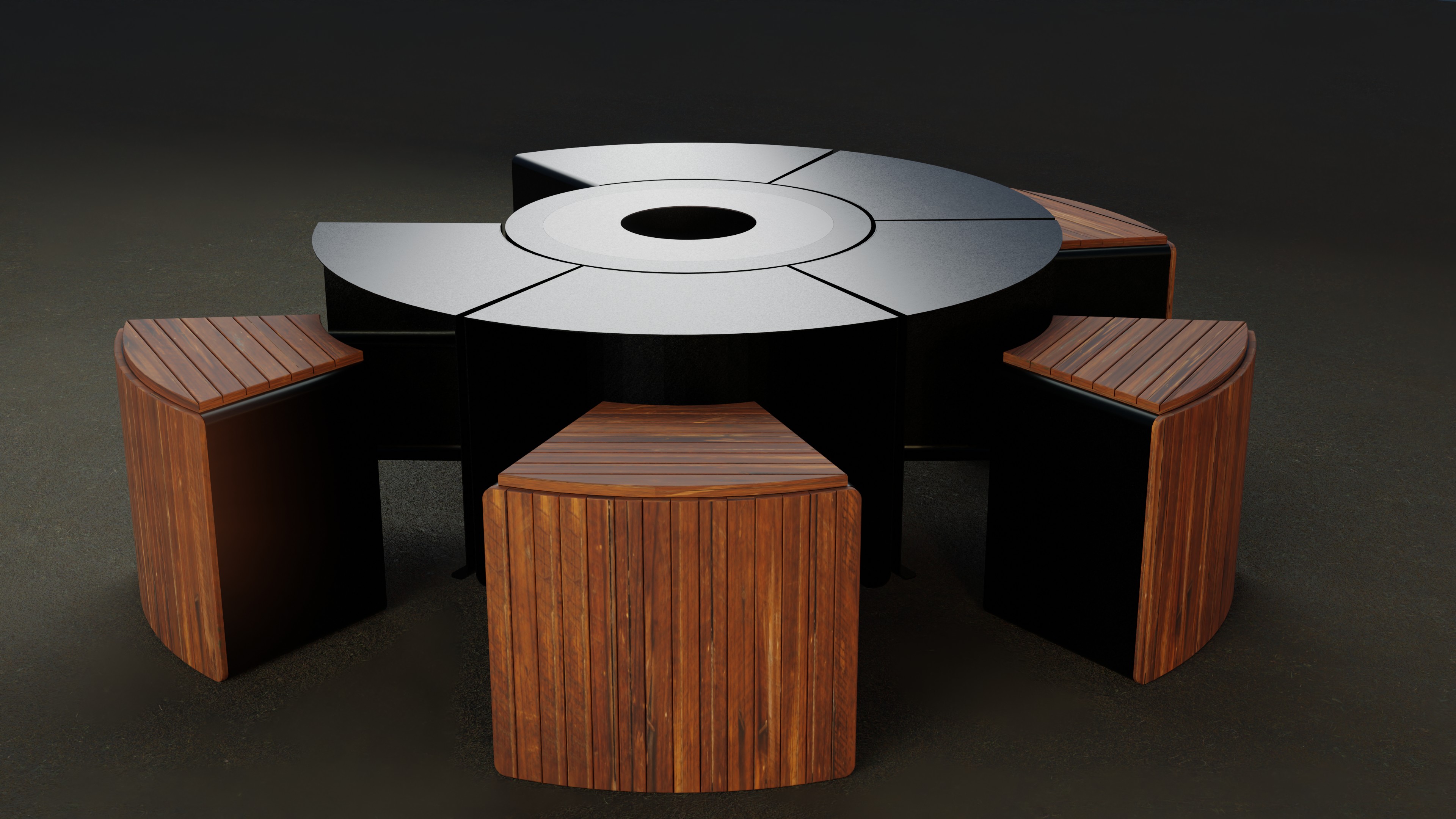 Ateş çukuru veya üzerini kapatıp masa olarak kullanım seçenekleri de vardır.